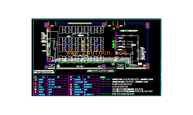 小学智慧录播教室及校园电视台及智能教室电气设计图,设计范围:智能教室的多屏互动教学系统、阅读教学系统、智慧教室录播系统、智能物联系统及强电插座。校园电视台系统弱电设备及强电插座。系统由智慧教学平台软件和教室内的终端设备及管理软件组成。智慧教学管理软件包括课程资源系统、教学管理系统、课堂数据分析系统,部署在校园数据机房内。各间教室内按需设计教师及学生操作使用的智能化设备。